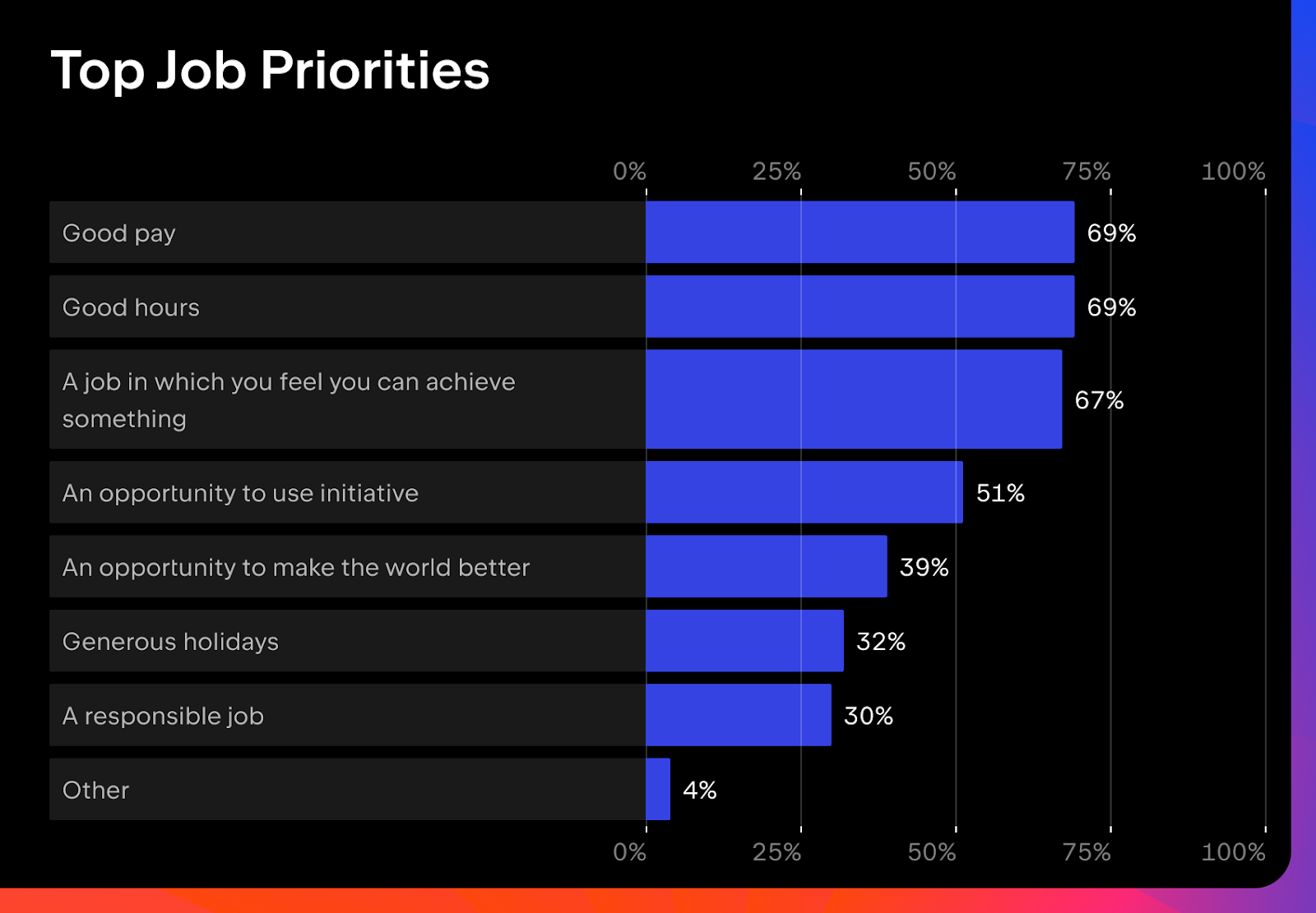 우리는 Java 개발자들이 재정적 혜택뿐만 아니라 의미 있고 영향력 있는 작업에도 동기를 부여받는다는 점이 흥미로웠습니다. 즉, 작업 결과를 보면 더 많은 작업을 하기로 선택하지만 여전히 균형을 이룬다고 느낄 수 있습니다.